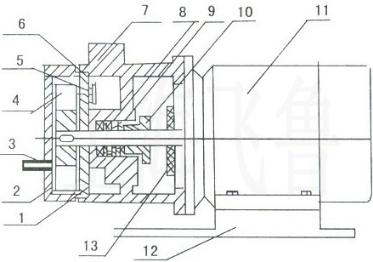 SK直聯型水環式真空泵的結構如上圖所示:主要是由泵蓋、葉輪、泵體組成,泵體上部有進排氣口法蘭,軸偏心裝在泵體內,葉輪用平鍵固定于軸上,葉輪與泵蓋及圓盤間的間隙,用泵體和圓盤之間間的墊子來調整,此間隙決定氣體在泵內由進氣口至排氣口流動中損失的大小。